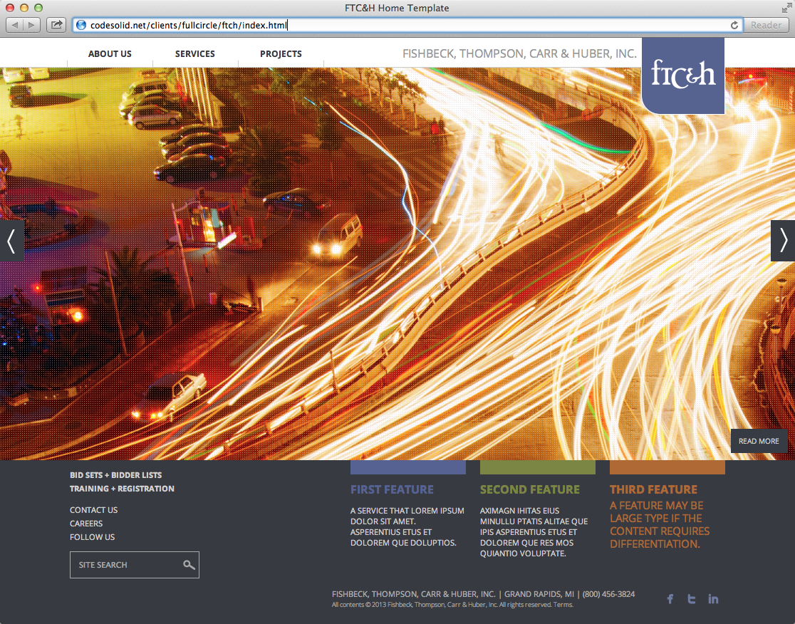 My latest 3 month assignment through Otterbase provided me with some stellar designs from the team at Full Circle Marketing in Grand Rapids to mark up and code. I was responsible for taking the Photoshop designs and creating a working website template.
